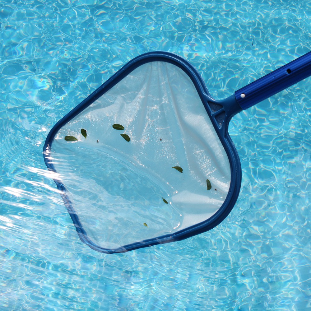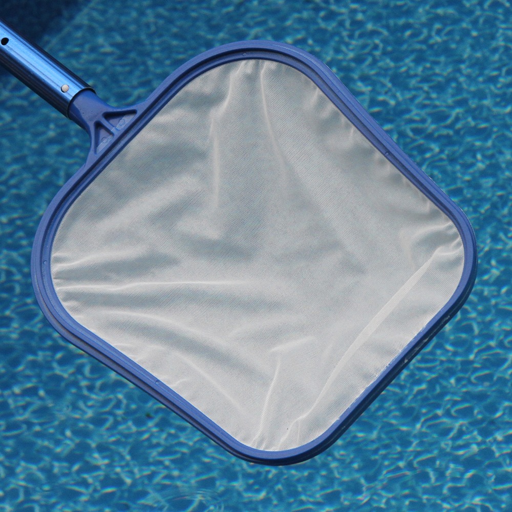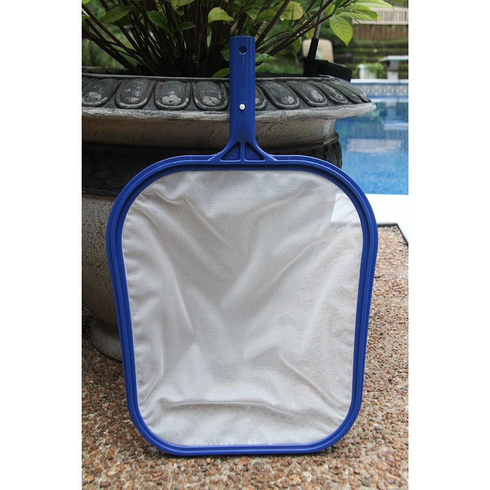 Leaf skimmer with fine nylon mesh net is great for pools with overhead enclosures to remove the finest particles from pool water surface. Made with curved edges to allow easy use in pool corners. Light weight nylon net allows water to pass through easily, making skimming easy.