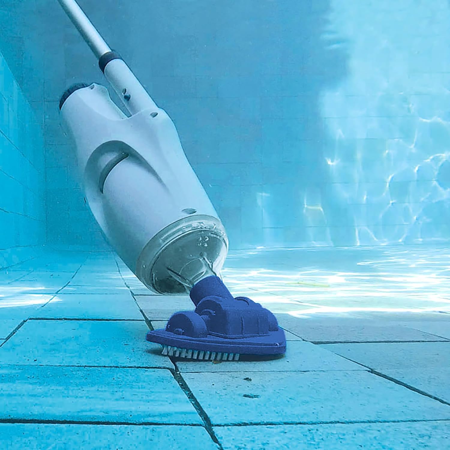 Rechargeable pool vacuum, designed for use in small pools and spas. Great for those quick clean-ups. Complete with pole and two vacuum heads.